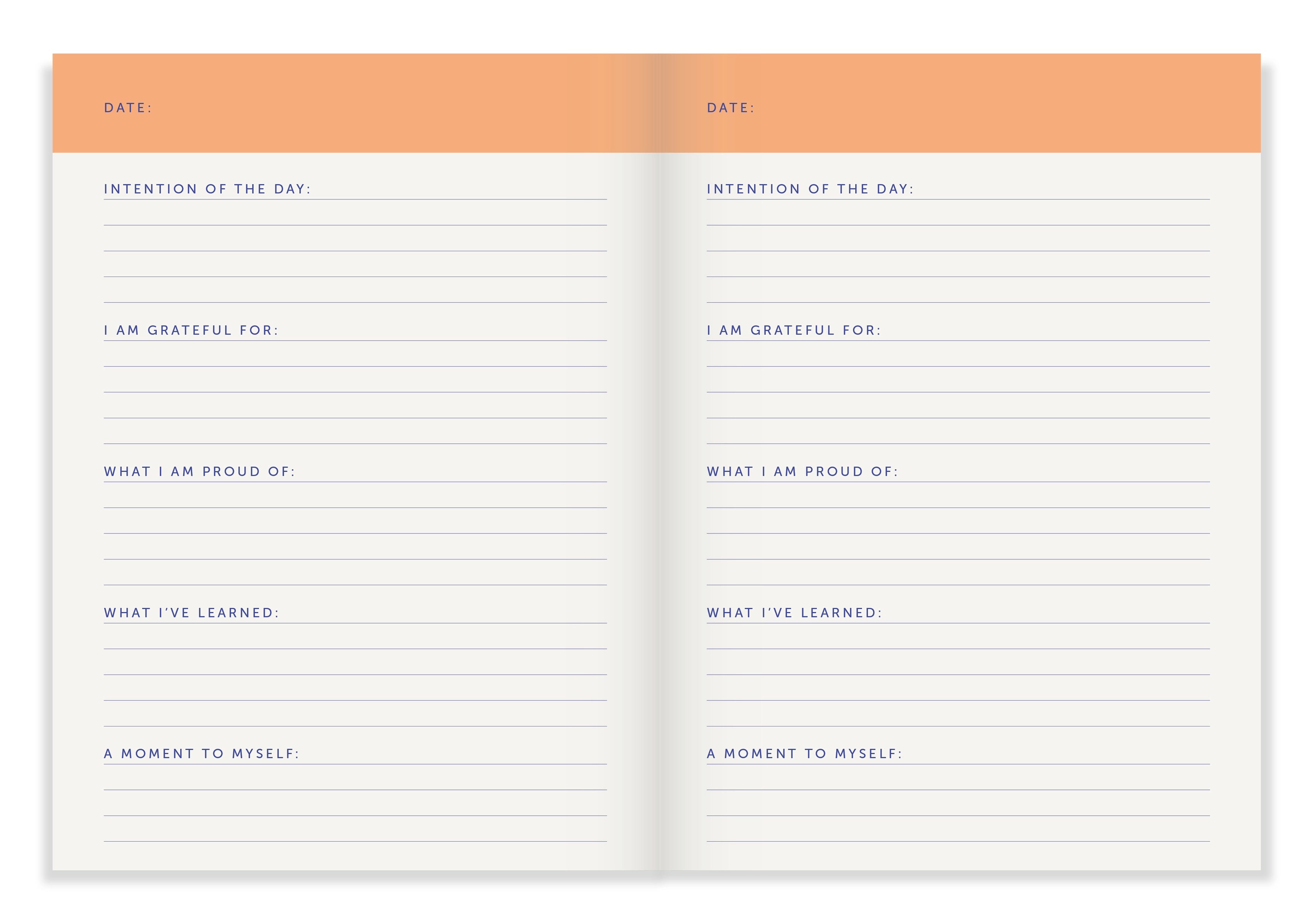 Tagebuch vom niederländischen Label A-Journal. Das Tagebuch wurde entwickelt, damit Du Dir jeden Tag einen Moment Zeit für Dich selbst nehmen kannst. Um wahrzunehmen, wie Du Dich fühlst, um über das Vergangene nachzudenken und um von der Zukunft zu träumen. Durch diese tägliche Routine wirst Du Dir Deiner Gedanken bewusster, und indem Du sie aufschreibst, schaffst Du Raum und Ruhe. Jeden Tag schreibst Du die folgenden 5 Schwerpunkte auf: Absicht des Tages, Ich bin dankbar für, Worauf ich stolz, Was ich gelernt habe, Ein Moment für mich selbst.