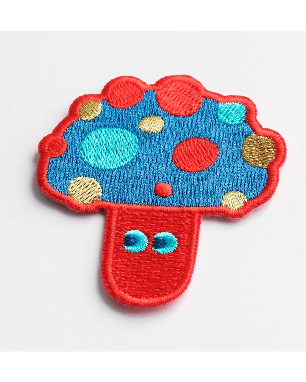 • Arhoj Patch Shroom (Serie #1): Kleiner, aufbügelbarer Pilz-Aufnäher mit blauem Hut, designed von Studio Arhoj, ideal zum Individualisieren von Kleidung und Accessoires. Maße: 5 x 6 cm.