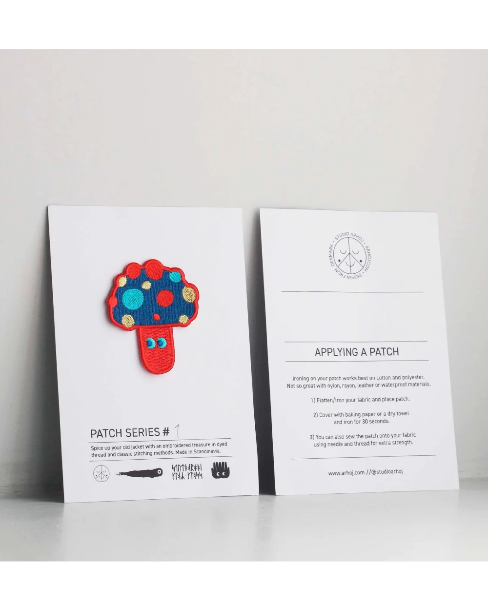 Der von Studio Arhoj entworfene und in Schweden hergestellte Aufnäher kann aufgebügelt (ein Handtuch zwischen Bügeleisen und Aufnäher legen!) oder aufgenäht werden, damit er besser sitzt.