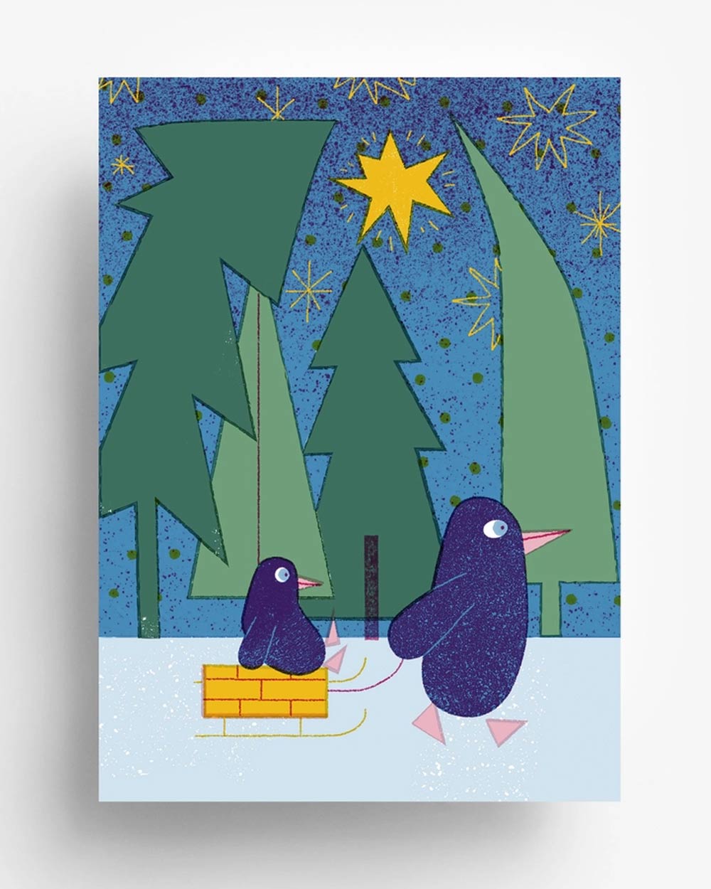 Weihnachtliche Postkarte mit einem Motiv der Hamburger Illustratorin Barbara Dziadosz.