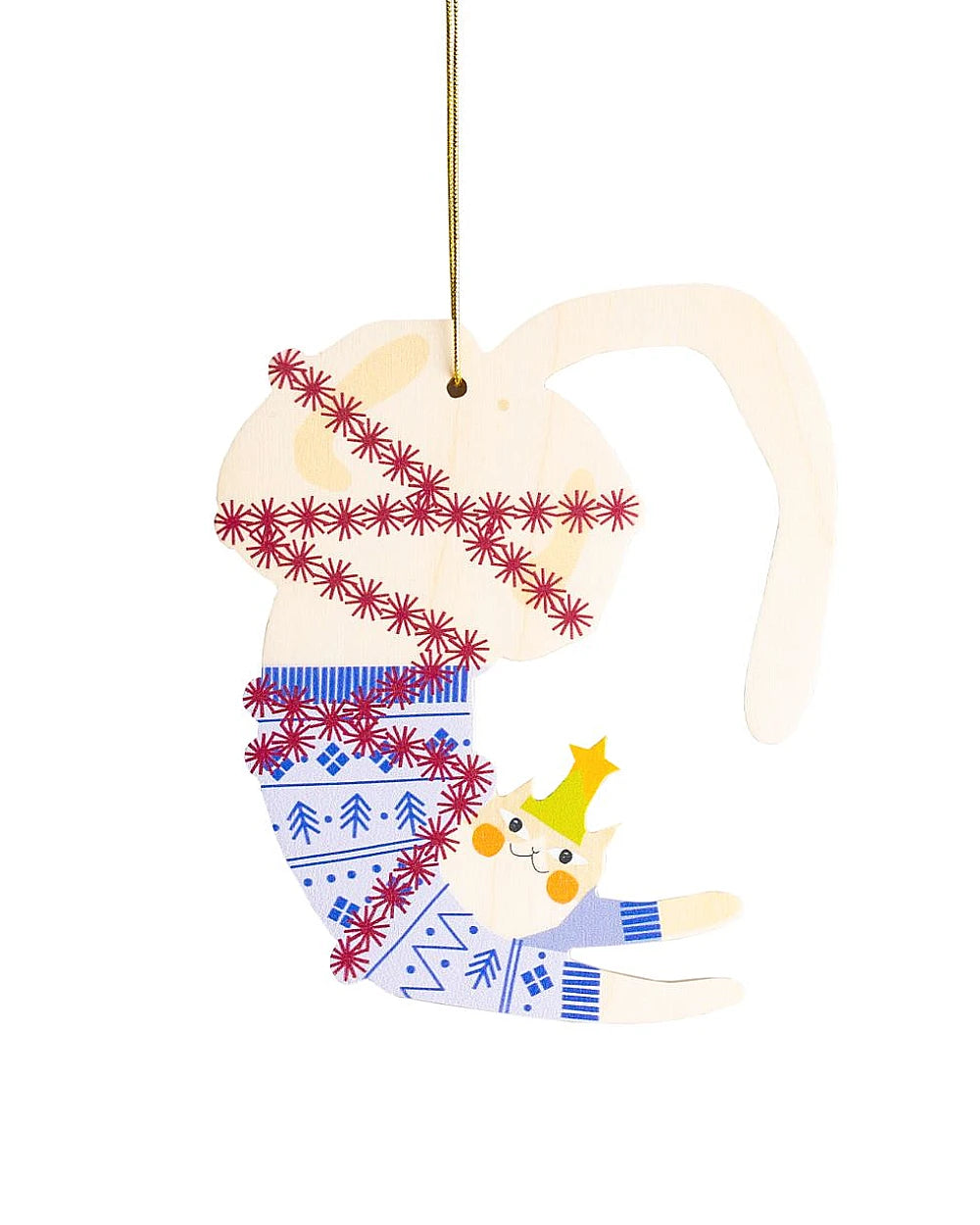 Hölzerner Weihnachtsbaum-Anhänger Spielende Katze