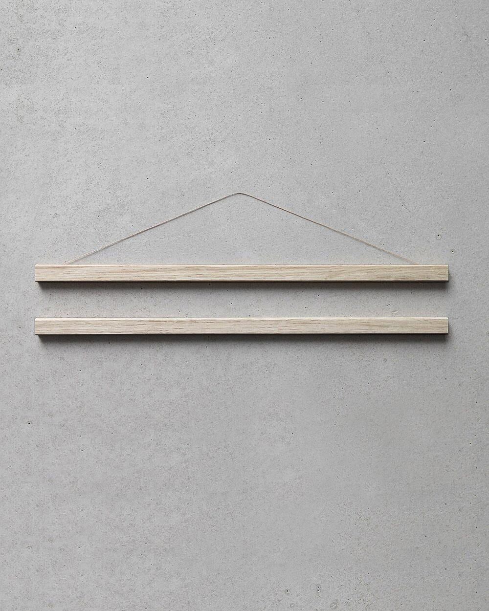 Eine elegante und schöne Möglichkeit, deine Poster zu rahmen. Die Posterleiste kannst du entweder an einem kleine Band aufhängen oder das Band abnehmen und die Posterleiste direkt mit Schrauben an der Wand befestigen.