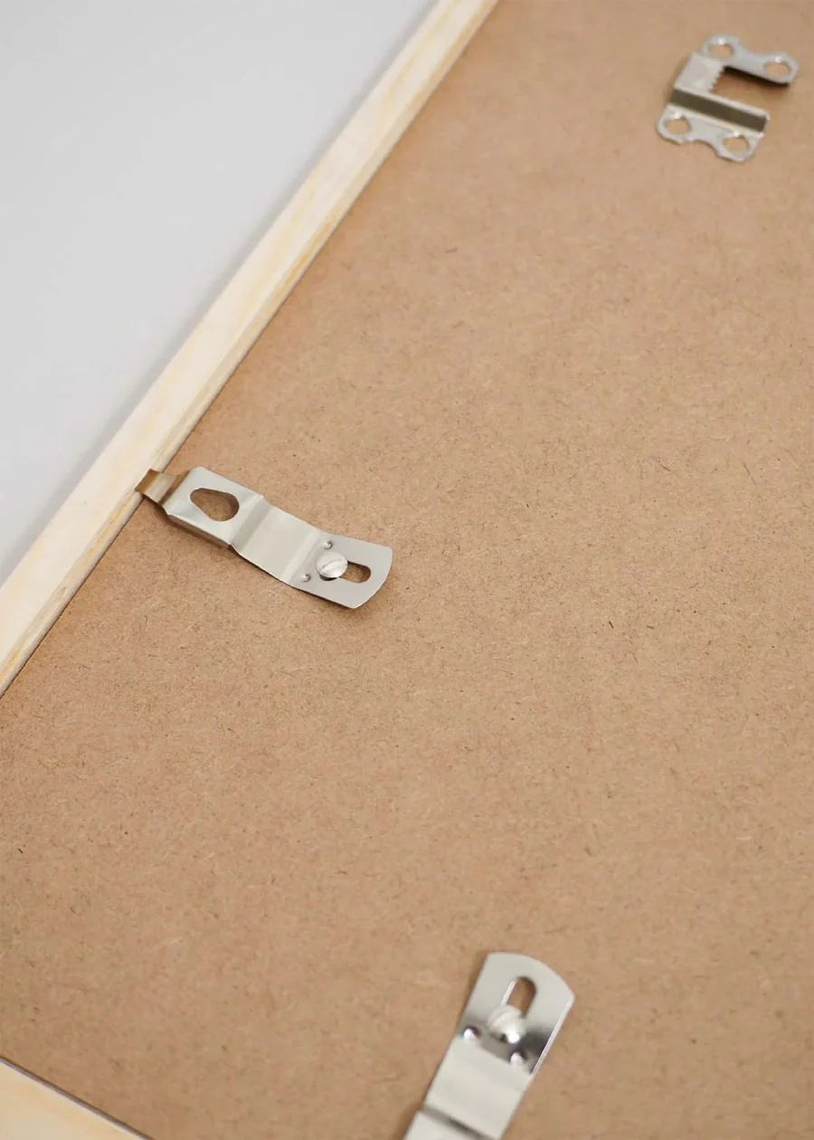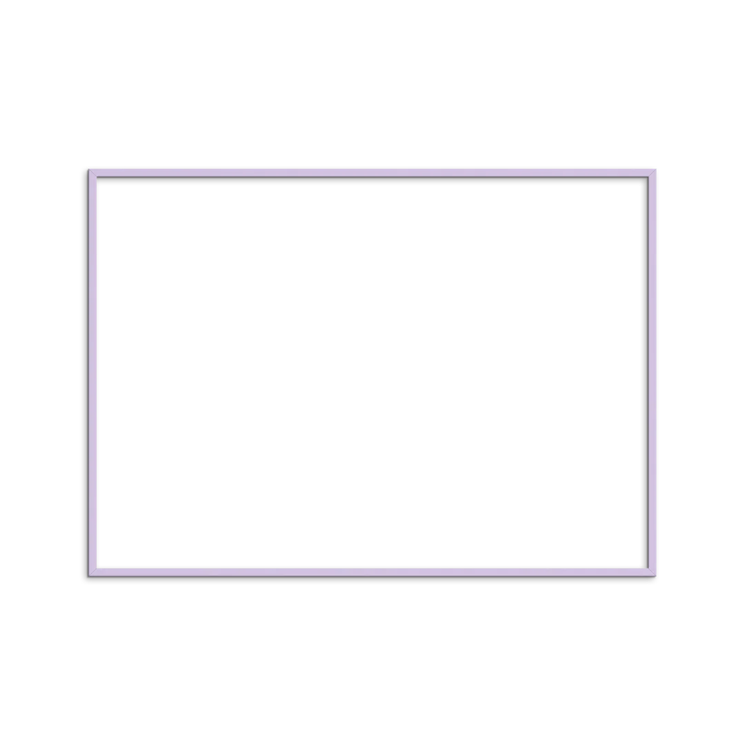 Lila Holzrahmen aus Massivholz. Der Rahmen hat zwei Metallbügel auf der Rückseite, so dass er sowohl vertikal als auch horizontal an die Wand gehängt werden kann. Der Rahmen wird von der Rückseite aus mit Hilfe der Metallklammern geöffnet, die sich zur Seite drehen lassen, so dass du deine Kunstwerke leicht einrahmen kannst.