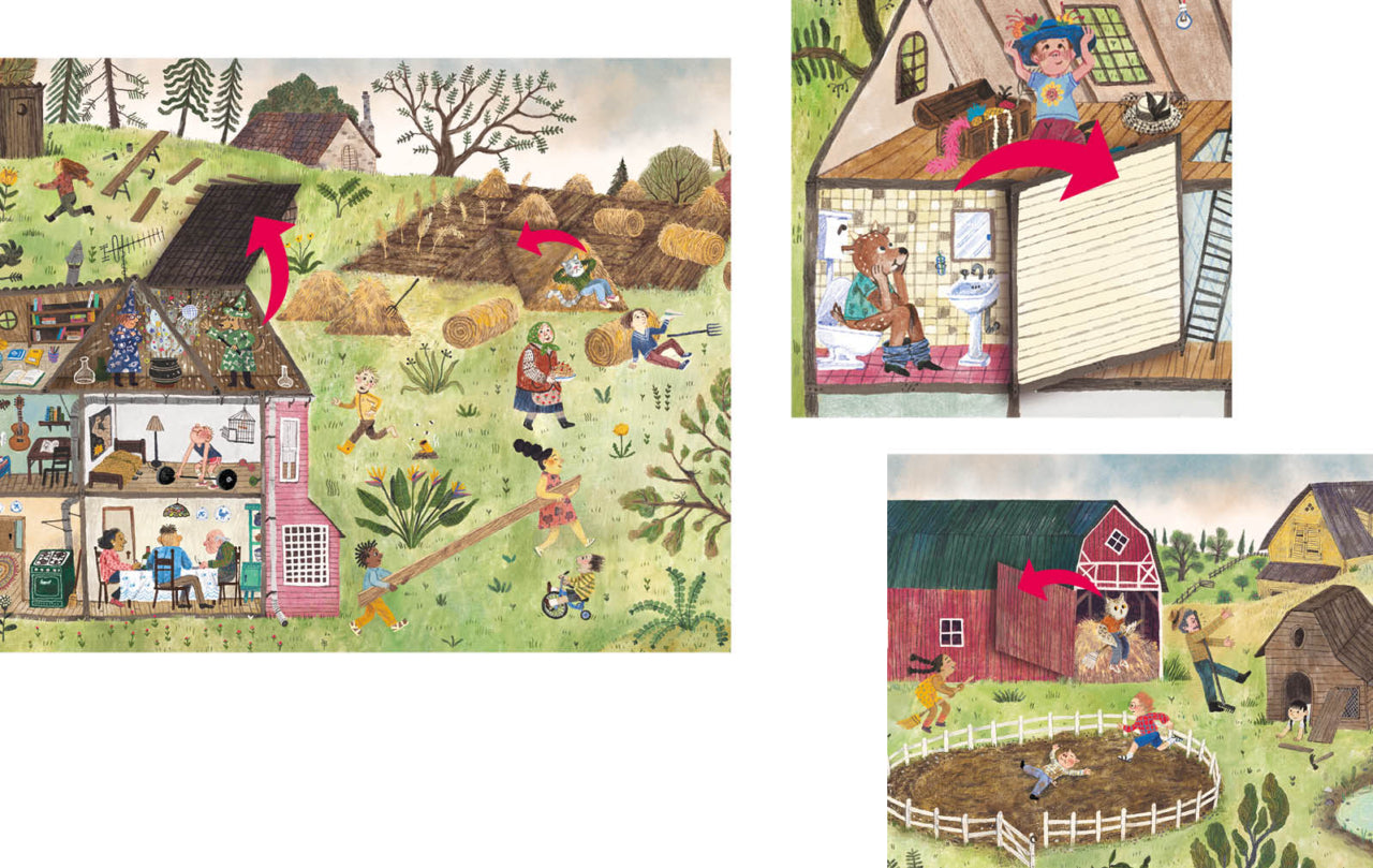 Es gibt so viel zu sehen! Hinter den Klappen verstecken sich allerlei Überraschungen. Möchtest Du in der Welt der Menschen oder der Welt der Tiere sein?
