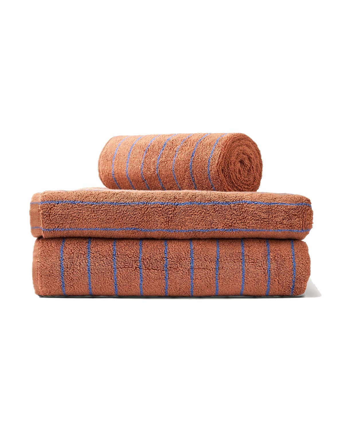 Flauschiges, gestreiftes Naram Badelaken in Sea Foam & Deep Teal vom dänischen Label Bongusta.