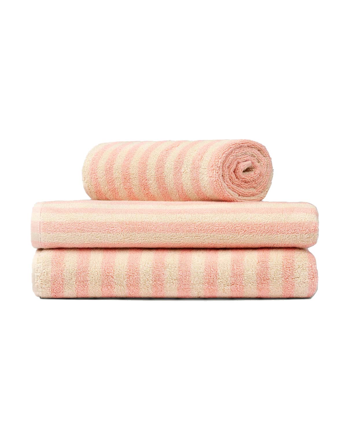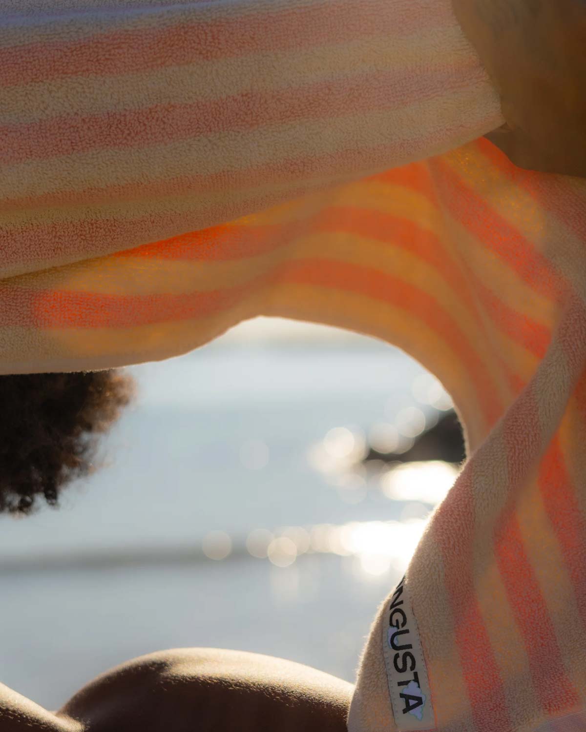 Flauschiges, gestreiftes Naram Badelaken in Tropical & Creme vom dänischen Label Bongusta.