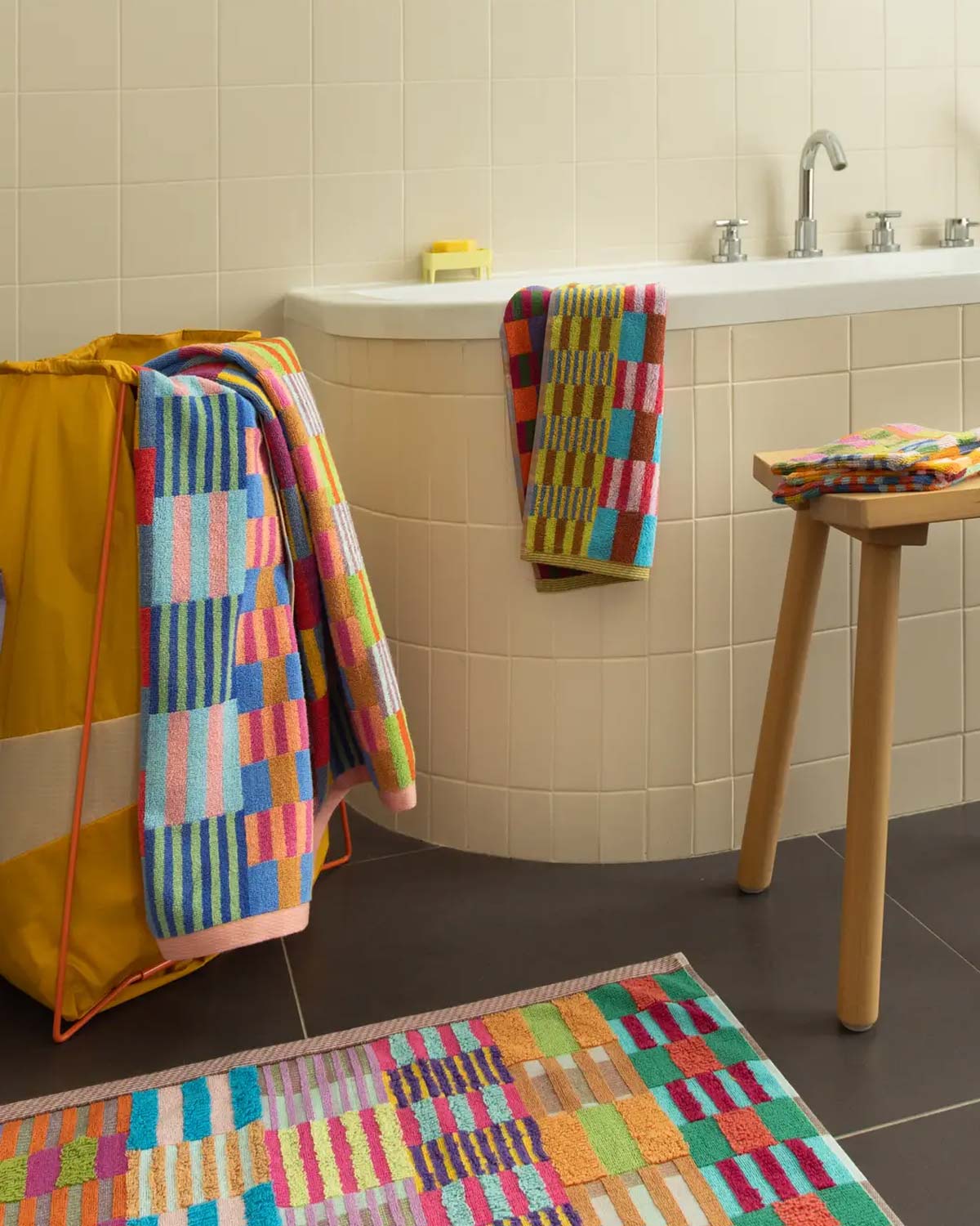 Farbenfrohe Badematte von Foekje Fleur. Wow, gute Laune zieht jetzt auch ins Badezimmer ein...