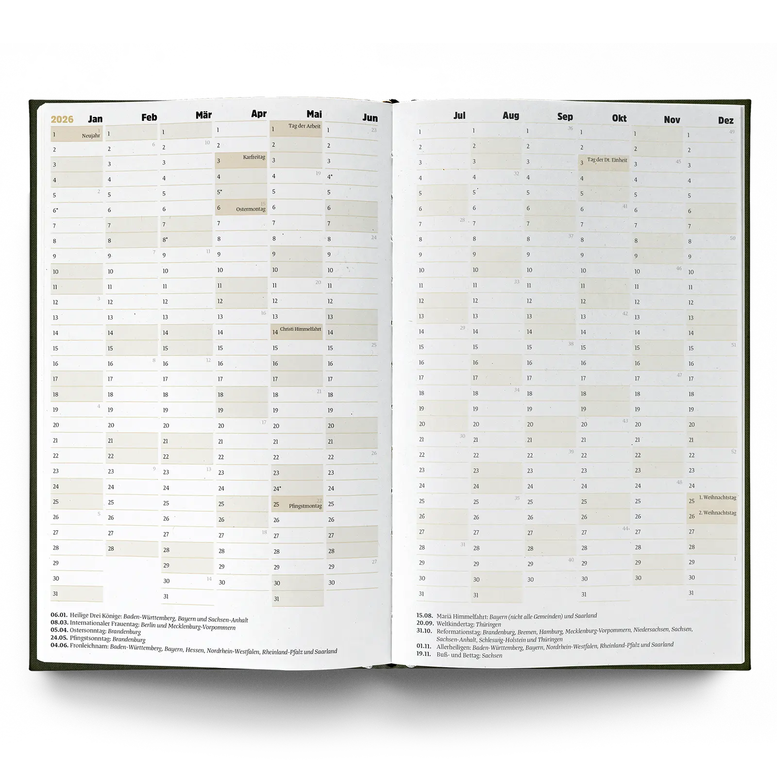 - Jahresübersicht, Ferien, Feiertage 2026/2027