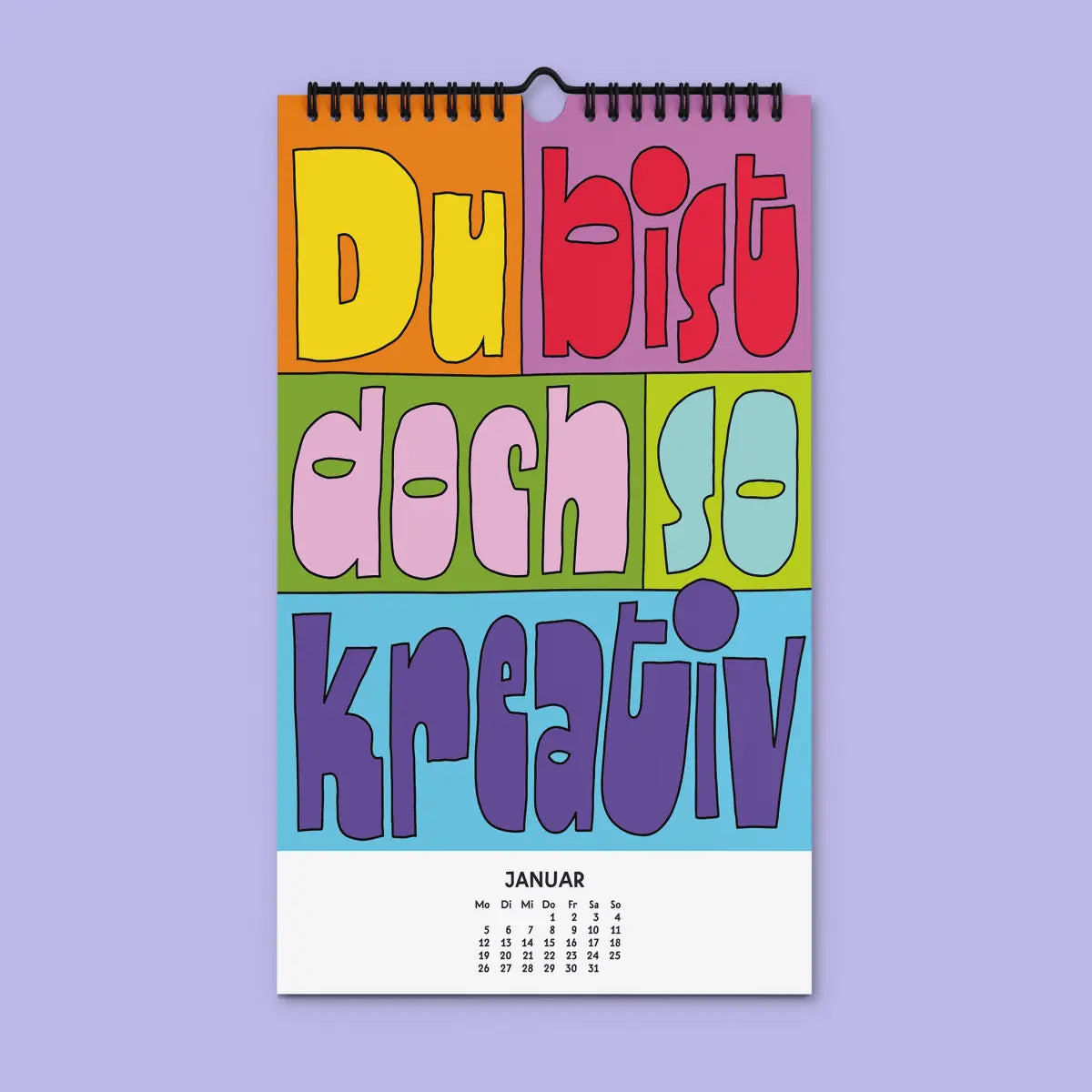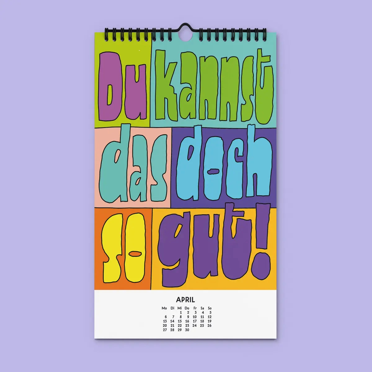 Der Kalender für Kreative. 12 Sprüche, die wir alle kennen, sobald die Frage kommt: „Und was machst du beruflich?“. Designerin und Autorin Chris Campe illustriert in diesen Kommentaren, das Spannungsfeld zwischen künstlerischer Arbeit und gesellschaftlicher Erwartung. Daraus entstanden: Ein Kalender für 2026 als stiller Verbündeter und Erinnerung daran, dass kreative Arbeit nicht erklärt werden muss, um wertvoll zu sein. Chris Campe @allthingsletters fasst Ideen in Worte und kommuniziert sie mit individuell gezeichneter Schrift. Mehr auf www.allthingsletters.com