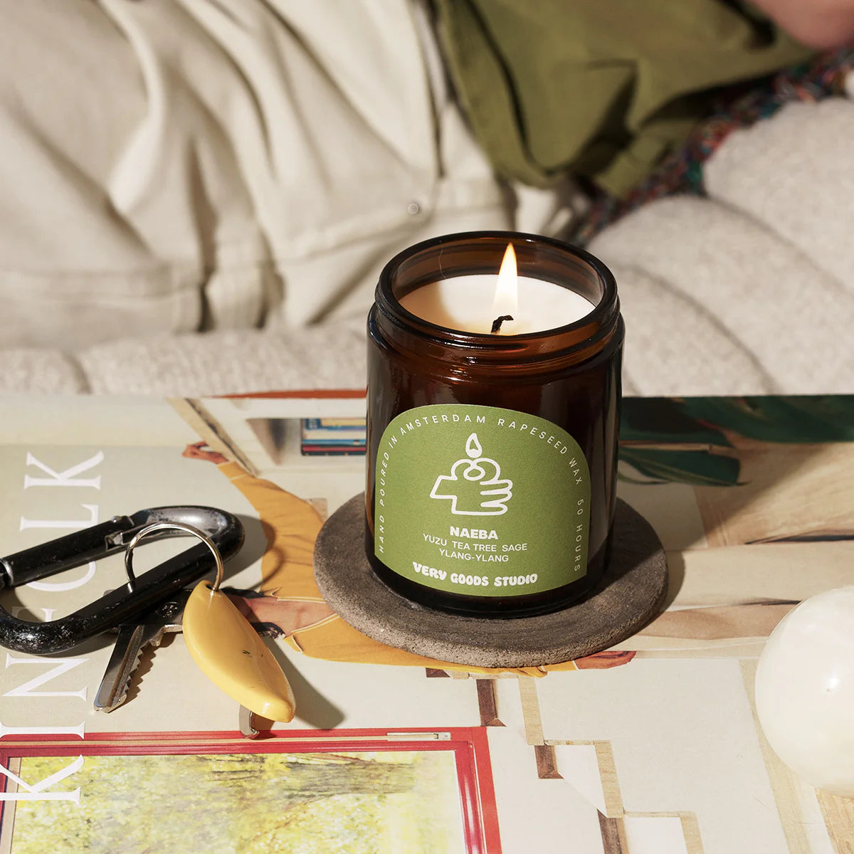 Unsere Kerzen werden aus Rapswachs hergestellt und in unserem kleinen Atelier in Amsterdam von Hand in schöne recycelte Braunglasgefäße gegossen. Die Kerzen strahlen ein warmes Licht aus und passen gut in jedes Interieur. Unsere Deckel sind aus Zinn und unsere Verpackungen sind zu 100 % kunststofffrei. Alle unsere Produkte sind natürlich, vegan und werden in den Niederlanden handgefertigt.