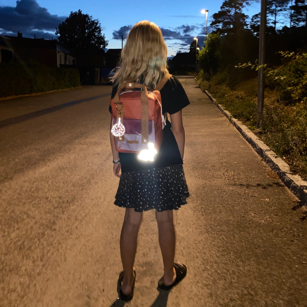 - Hinweis: Die Reflektoren sind dazu gedacht, als Ergänzung zu einem Standard-Sicherheitsreflektor an einer Tasche, einem Rucksack oder einer Handtasche befestigt zu werden.
