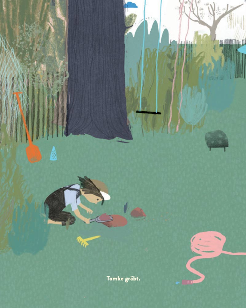 Die Worte überlässt Bestseller-Autorin Lena Hach in ihrem ersten Bilderbuch den ständig intervenierenden Erwachsenen. Tomke muss gar nichts sagen, das Graben genügt. Die genialen Illustrationen von Julia Dürr tauchen tief in Tomkes Welt ein und lassen uns die Faszination der kindlichen Selbstvergessenheit erspüren.