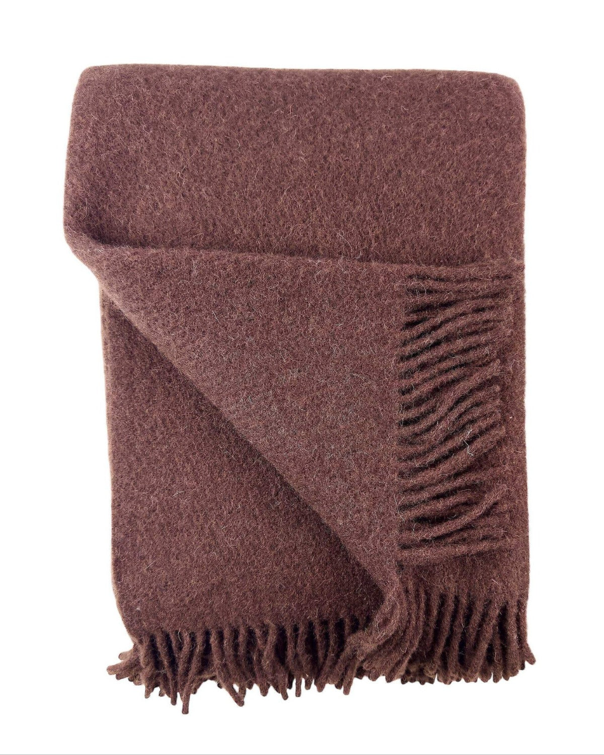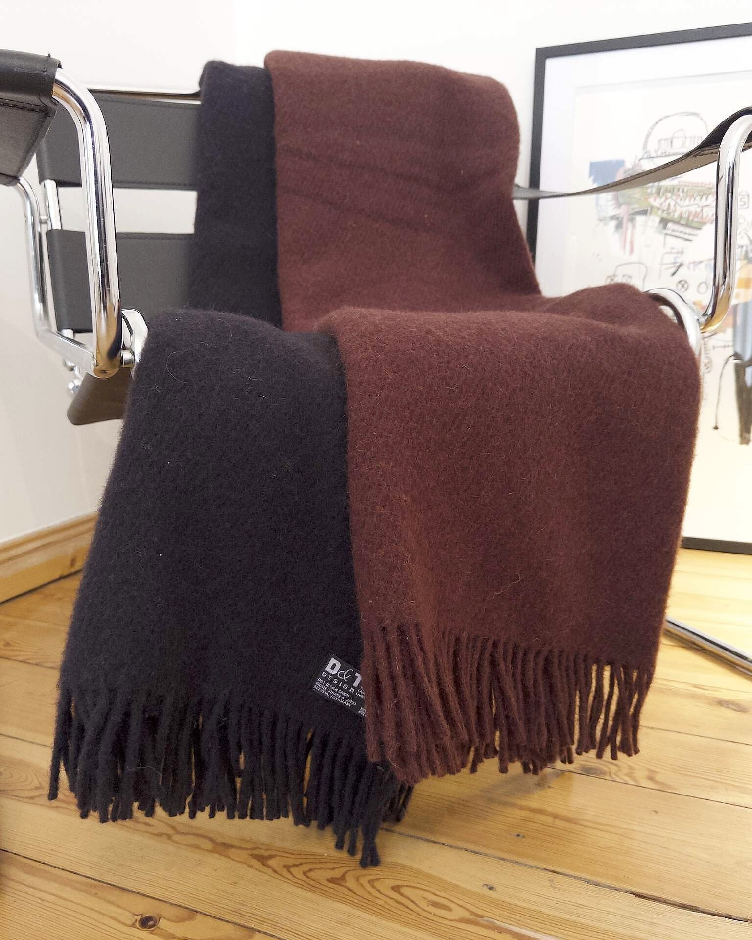 Einfarbige, gewebte Wolldecke aus reiner Schurwolle mit Fransen vom Label D&T Design Hamburg.