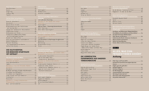 Aber der Reihe nach: Damit du vor lauter Fermentations-Fieber nicht untergehst, findest du in diesem Buch detaillierte Anleitungen zu den unterschiedlichen Techniken: von der Kraut- und Laketechnik bis zum selbst gemachten Essig, von der Joghurtkultur bis zum Wasserkefir. Du erfährst, wie man richtig schnippelt, knetet, siebt, auspresst, mixt und einlagert. In 150 Rezepten lernst du die geballte Geschmacksvielfalt des Fermentierens kennen – koste dein unfassbar würziges Kimchi, und du fühlst dich mit einem Schlag auf Asienreise versetzt. Immer mit dabei: Rezeptideen aus aller Welt, in denen deine Fermente die Hauptrolle spielen. Wie wär’s mit einem Tempeh-Burger? Oder einem erfrischenden Kefir-Colada? Mit den Tipps der Fermentation Ninja Geru Pulsinger und Marcel Kruse wirst du jedenfalls ganz einfach und Schritt-für-Schritt in das Fermentier-Universum abtauchen. Sie haben massenhaft Tricks und Geheimnisse auf Lager, die dir helfen, zum Gärgemüse-Flüsterer zu werden. Und wenn dann doch mal etwas schiefgehen sollte: Schimmel abkratzen und dich in Gelassenheit üben. Denn auch das gehört zum Fermentieren: abwarten und Kombucha trinken.