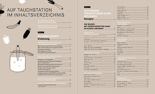 Das Beste? Du kannst sofort loslegen. Das Einzige, was du brauchst, sind Einmachgläser, Gewichte zum Beschweren und vielleicht die ein oder andere Starterkultur – die du immer wieder weiterzüchten kannst. Und natürlich jede Menge Obst, Gemüse, Kräuter, Mehl oder Milch … oder einfach alles, was du im Garten, im Wald und auf der Wiese findest. Ja, genau: Du kannst nicht nur deine Gartenschätze, die deine Beete im Sommer überwuchern, ganzjahrestauglich einlegen, sondern alle möglichen Zutaten in deine Gläser verfrachten. Damit kannst du ausprobieren, experimentieren – und deinen Fermenten ein zufriedenes Glucksen entlocken. Was regional wächst, verwandelt sich in kunterbunte, internationale Gerichte – ohne Aufwand, Energieverschwendung und ohne Müll. Quasi ganz von selbst. Wer fermentiert, tut sich selbst und der Umwelt etwas Gutes und kann die Freiheit erleben, eigene, komplett neue Lebensmittel und Geschmäcker zu erschaffen – die mit absoluter Sicherheit zum nächsten Lieblingsessen werden. Also, mach’s deinem Gemüse nach: Luft anhalten und losblubbern!
