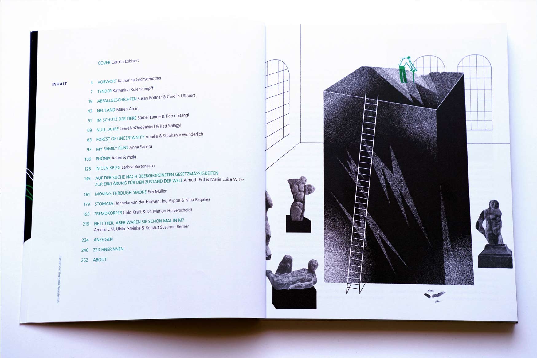 Das Beschreiten neuer Wege kann aus Notwendigkeit heraus geschehen, oder aus der Lust auf neue Erfahrungen. Und so weckt das Unbekannte auch mbivalente Gefühle in uns: Neugier und Furcht, Abenteuerlust und Angst, Spannung und Widerstand. Die Künstlerinnen der aktuellen SPRING-Ausgabe wagen sich in ihren grafischen Erzählungen bewusst auf unbekanntes Terrain: Erstmals sind alle Geschichten im Teamwork und aus gemeinsamen Gesprächen entstanden – in INTO THE UNKNOWN treten die Künstlerinnen in einen Dialog mit Wissenschaftler*innen, Freund*innen, Großeltern & Kindern, Organisationen, Partner*innen, Ärzt*innen, Tieren und dem Unbekannten in sich selbst.