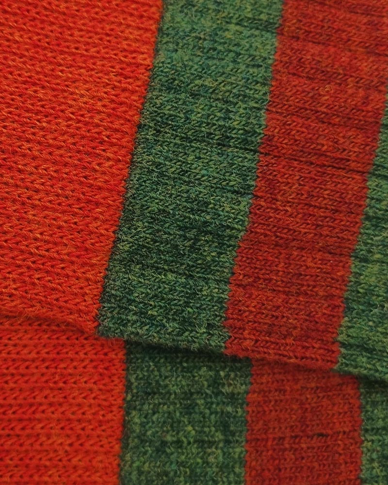 • Bio-Lammwollsocken - Rotbraun-Olive Gestreift
