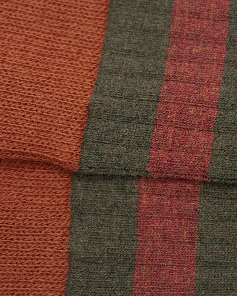 Bio-Lammwollsocken lang - Rotbraun-Olive Gestreift