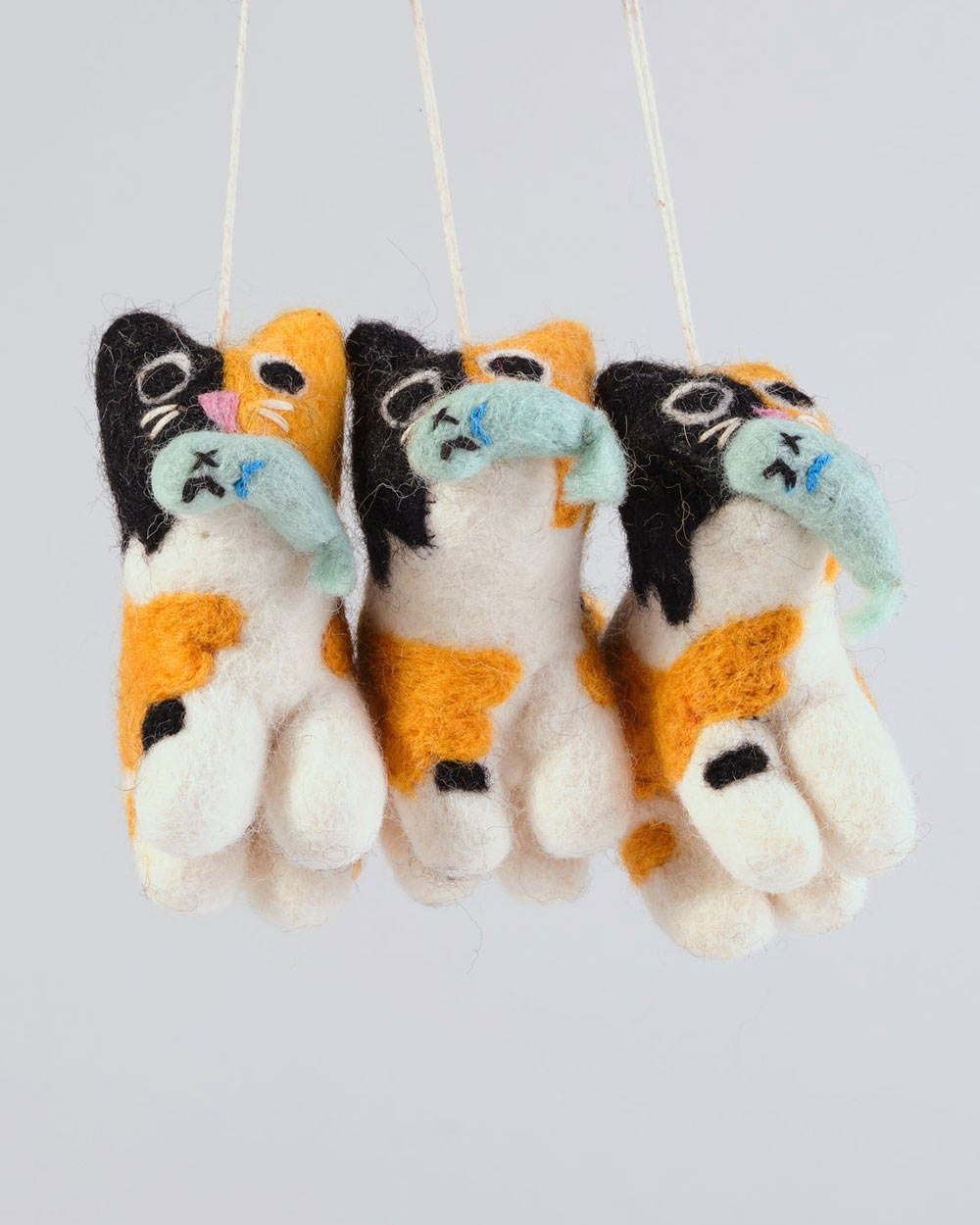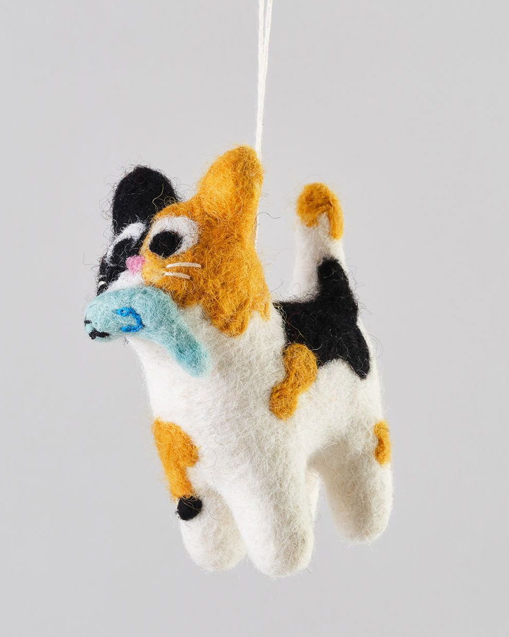 Die Katze Dwight, ein süßer Weihnachtsbaumanhänger aus gefilzter Wolle vom englischen Label Wrap.