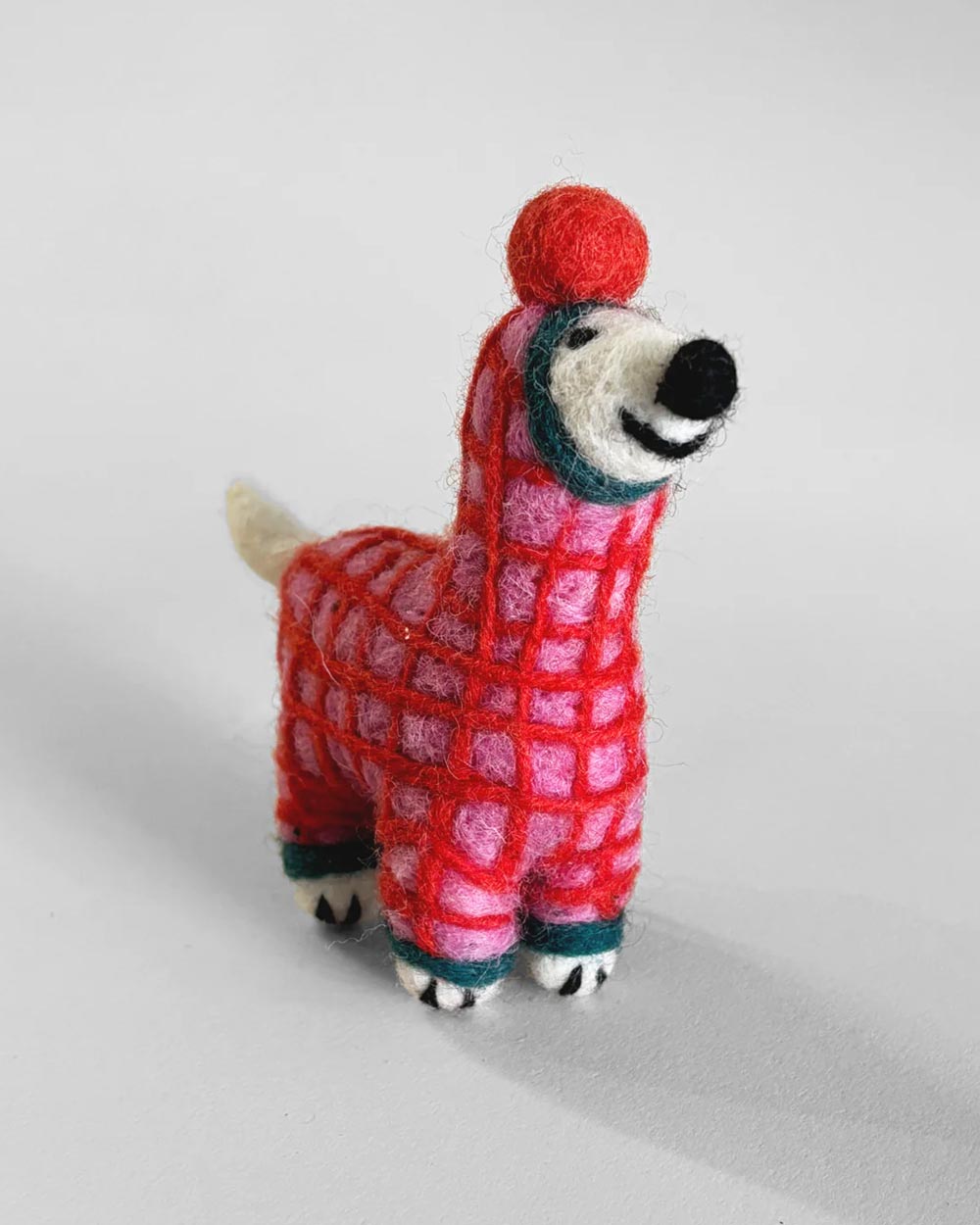 Niedlich, kuschelig und weihnachtlich. Entworfen von der langjährigen Wrap-Mitarbeiterin Cari Vander Yacht, trägt dieser selbstbewusste Welpe einen wolligen Pullover, schaut aus Weihnachtsstrümpfen hervor oder steht einfach nur da und sieht fabelhaft aus. Dieser gefilzte Freund wird in Zusammenarbeit mit einem nepalesischen Entwicklungsprojekt aus 100 % fair gehandelten Materialien hergestellt und von erfahrenen Handwerkerinnen vor Ort handgefertigt.