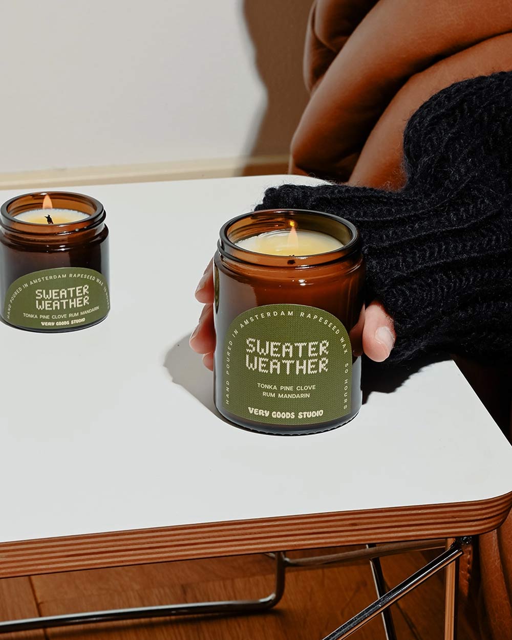 Unsere Kerzen werden aus Rapswachs hergestellt und in unserem kleinen Studio in Amsterdam von Hand in schöne recycelte Braunglasgefäße gegossen. Die Kerzen strahlen ein warmes Licht aus und passen gut in jedes Interieur. Unsere Deckel sind aus Zinn und unsere Verpackungen sind zu 100 % plastikfrei. Alle unsere Produkte sind natürlich, vegan und werden in den Niederlanden handgefertigt.
