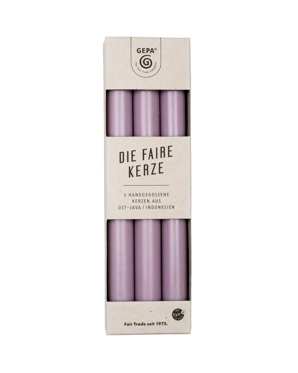 Fair Trade Tafelkerzen Lavender 3er Set / 22,5 cm