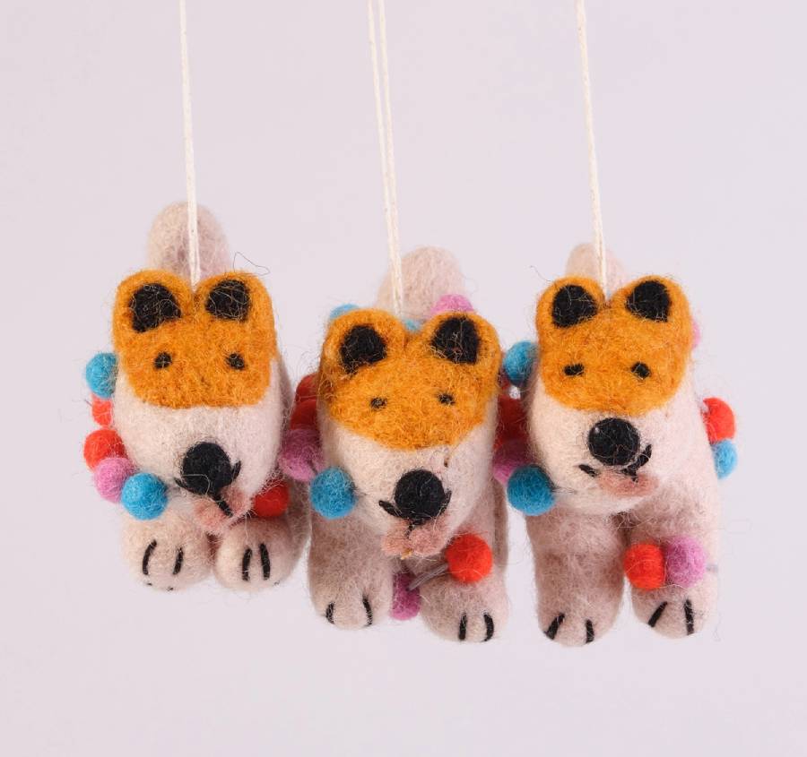 Niedlich, kuschelig und weihnachtlich - unser hängender Baumschmuck ist wieder da. Entworfen von der langjährigen Wrap-Mitarbeiterin Cari Vander Yacht, tragen diese selbstbewussten Welpen wollige Pullover, gucken aus Weihnachtsstrümpfen heraus oder stehen einfach nur da und sehen fabelhaft aus. Diese gefilzten Freunde werden in Zusammenarbeit mit einem nepalesischen Entwicklungsprojekt aus 100 % fair gehandelten Materialien hergestellt und von erfahrenen Handwerkerinnen vor Ort handgefertigt.