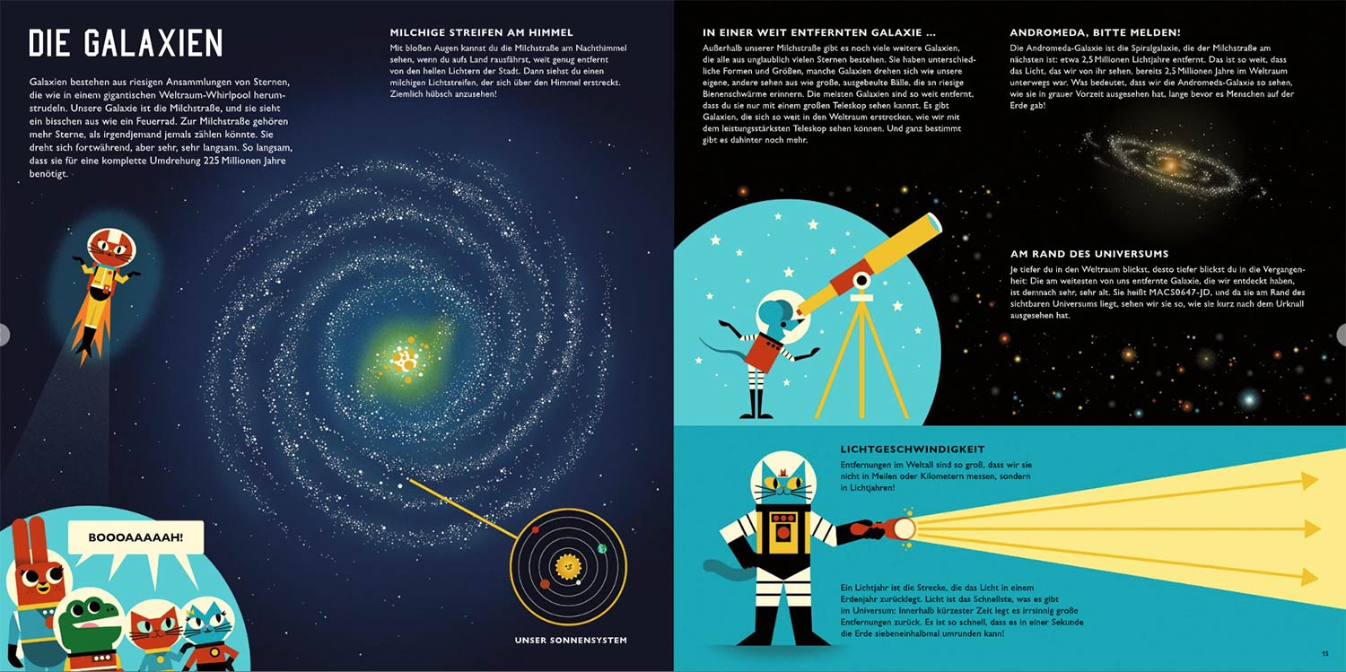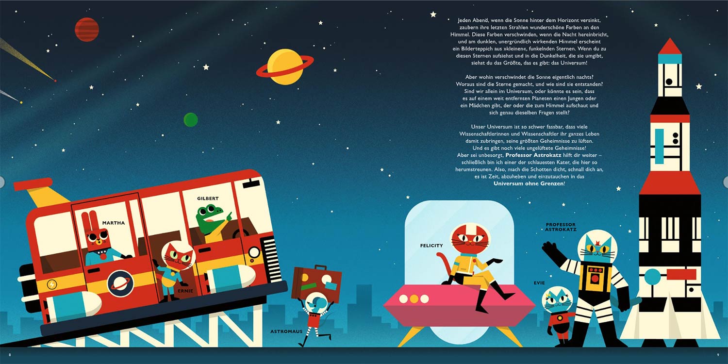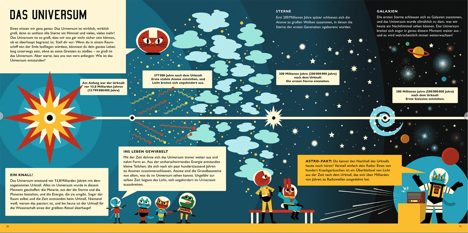 Seine Erkenntnisse zu komplexen naturwissenschaftlichen Themen vermittelt Professor Astrokatz auf vergnügliche und kindgerechte Weise. Die Neuausgabe von »Universum ohne Grenzen« ist auf dem neuesten Stand der Wissenschaft. Sie widmet sich den Themen Weltraumschrott, Schwarze Löcher, Deep Space, das Ende des Universums, Raumanzüge, Raketen und deren Entwicklung durch die Jahre. Das Buch erscheint mit neuem Cover und aufgefrischten Innenseiten.