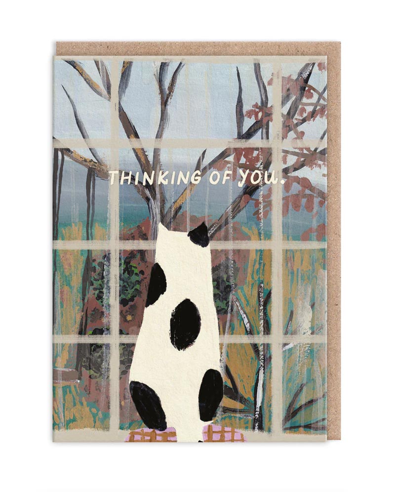 Katzenfenster-Karte „Ich denke an dich“ (A6). Verschönert jemandem den Tag mit dieser süßen Karte „Ich denke an dich“. Eine nachdenkliche Katze schaut aus einem Fenster in einem tollen Bild von Emily Doliner und macht diese A6-Karte mit leerer Innenseite zu einer wirklich sehr persönlichen Karte.