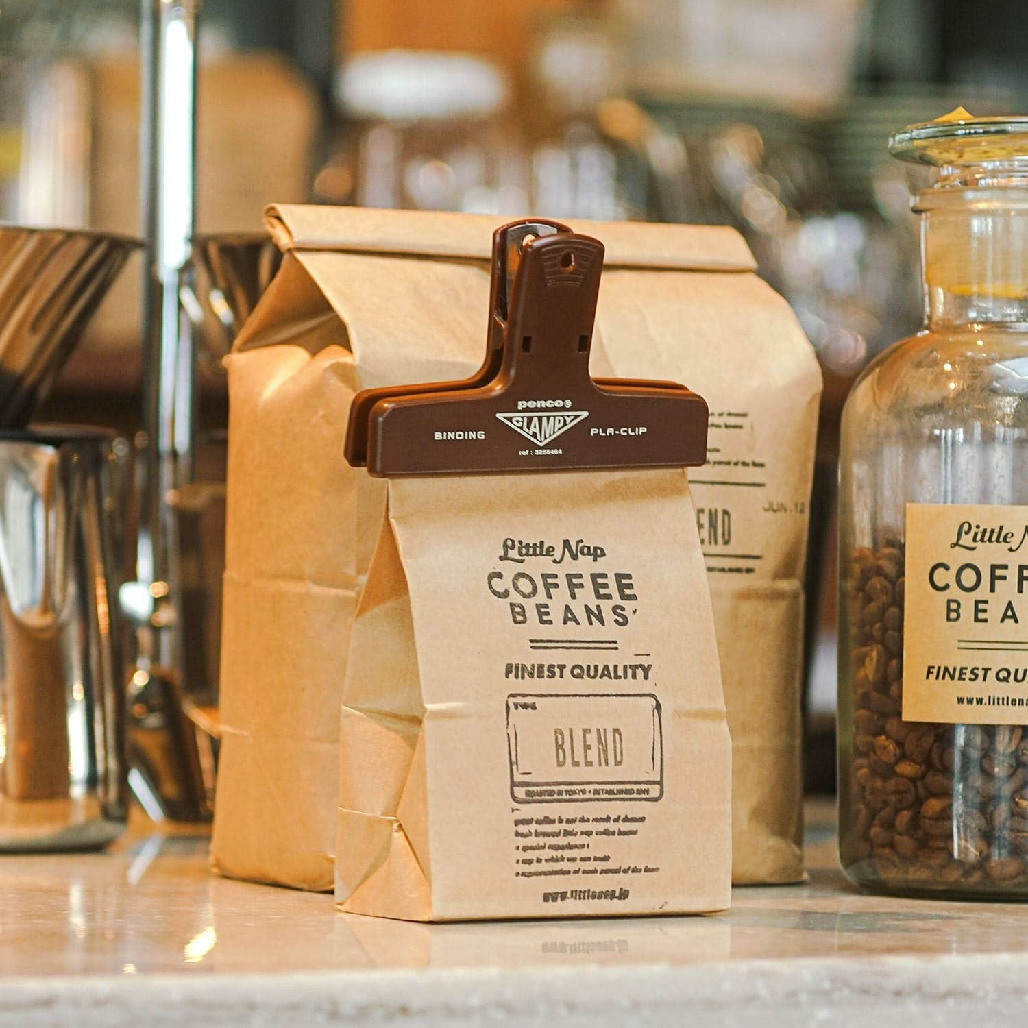 Dieser Kunststoffclip von Penco® ist in vielen schönen Farben erhältlich. Er lässt sich mit leichtem Druck weit öffnen und hält dank seiner großen Öffnung alles sicher fest, was Sie befestigen möchten. Er ist vielseitig einsetzbar, zum Beispiel zum Verschließen geöffneter Snack- oder Kaffeebohnentüten, zum Ordnen von Quittungen und Dokumenten oder als Buchklammer, um die Seiten Ihres Kalenders oder Lehrbuchs offen zu halten. Ein praktisches Accessoire, von dem man nie genug haben kann.