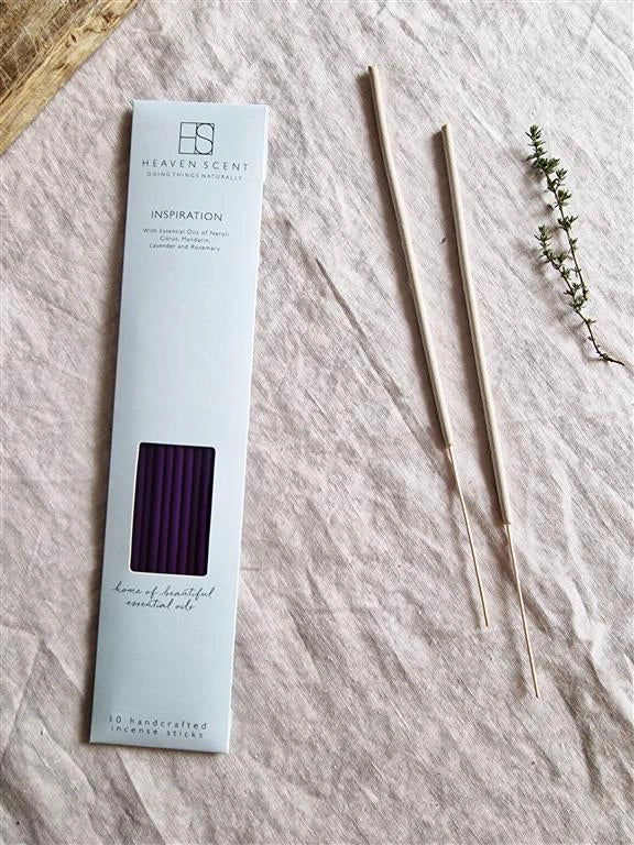 10 wunderbar duftende Räucherstäbchen vom englischen Label Heaven Scent Incense in farbigen FSC-zertifizierten Kartenpackungen.