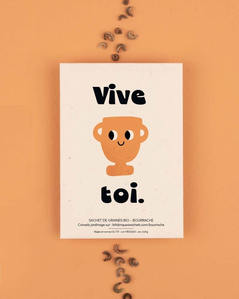 Mit diesem Saatgutpäckchen „Vive toi“ (Hoch sollst du leben!) zu feiern. Das Päckchen enthält Gipskrautsamen (Gypsophila).