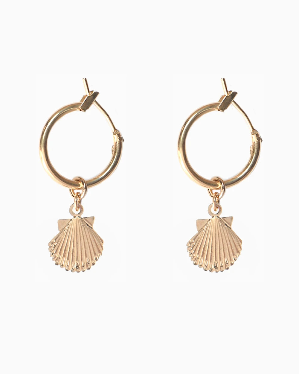 Vergoldete Ohrringe mit kleinem Anhänger in Form kleiner Jacobsmuscheln vom französischen Label Titlee.