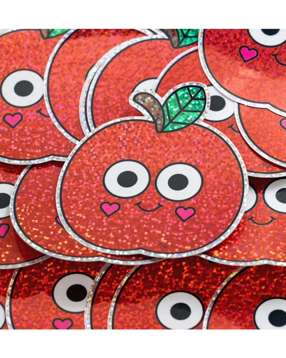 Mit dem Glanzsticker "Apple" wird dein Laptop wird nie wieder langweilig sein. Deine Wasserflasche bekommt endlich den Glanz, den sie verdient. Dein Terminplaner wird strahlen. Und Dein Skateboard? GLAM IT UP. Die Aufkleber sind in einer Vielzahl von Stilen und Designs erhältlich (u. a. holografisch, holografisch glitzernd, gebürsteter Aluminium-Look)