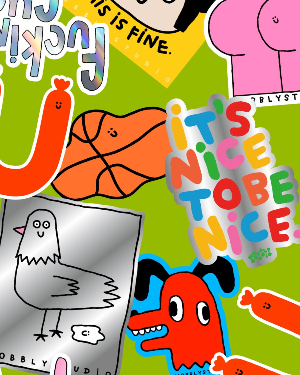 Cooler "It's nice to be nice"-Sticker der Französin Marie Chanteur für ihr Label Wobbly Studio.