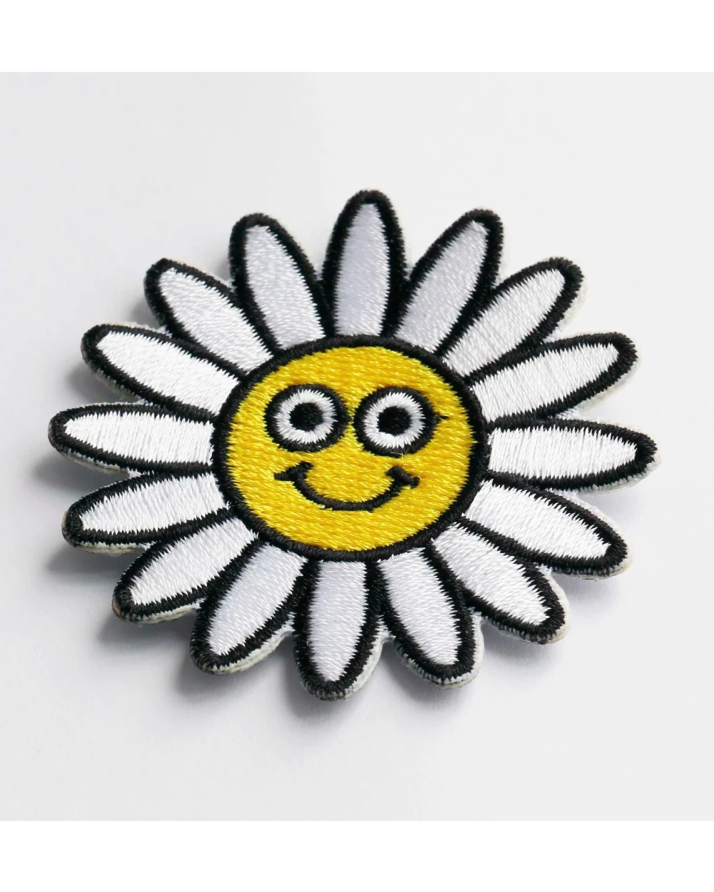 • Arhoj Patch Daisy (Serie #1): Gestickter Gänseblümchen-Aufnäher mit lächelndem Gesicht, ideal zum Aufpeppen von Kleidung, entworfen von Studio Arhoj, hergestellt in Schweden.