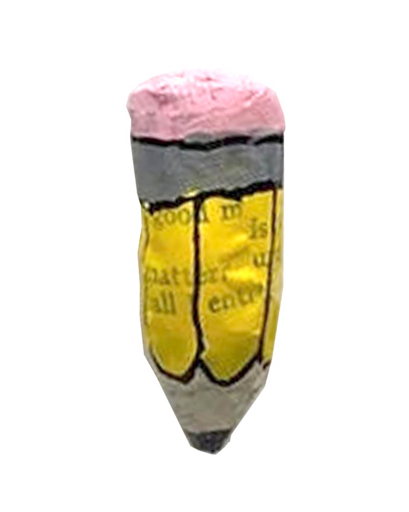 Miniskulptur der Hamburger Künstlerin dorobot. Hergestellt aus Pulp, bemalt mit gelber Acrylfarbe. Längen und Aussehen der Stiftstummelchen variieren leicht. Alle sind ca. 1 cm dick und 2-3cm lang.