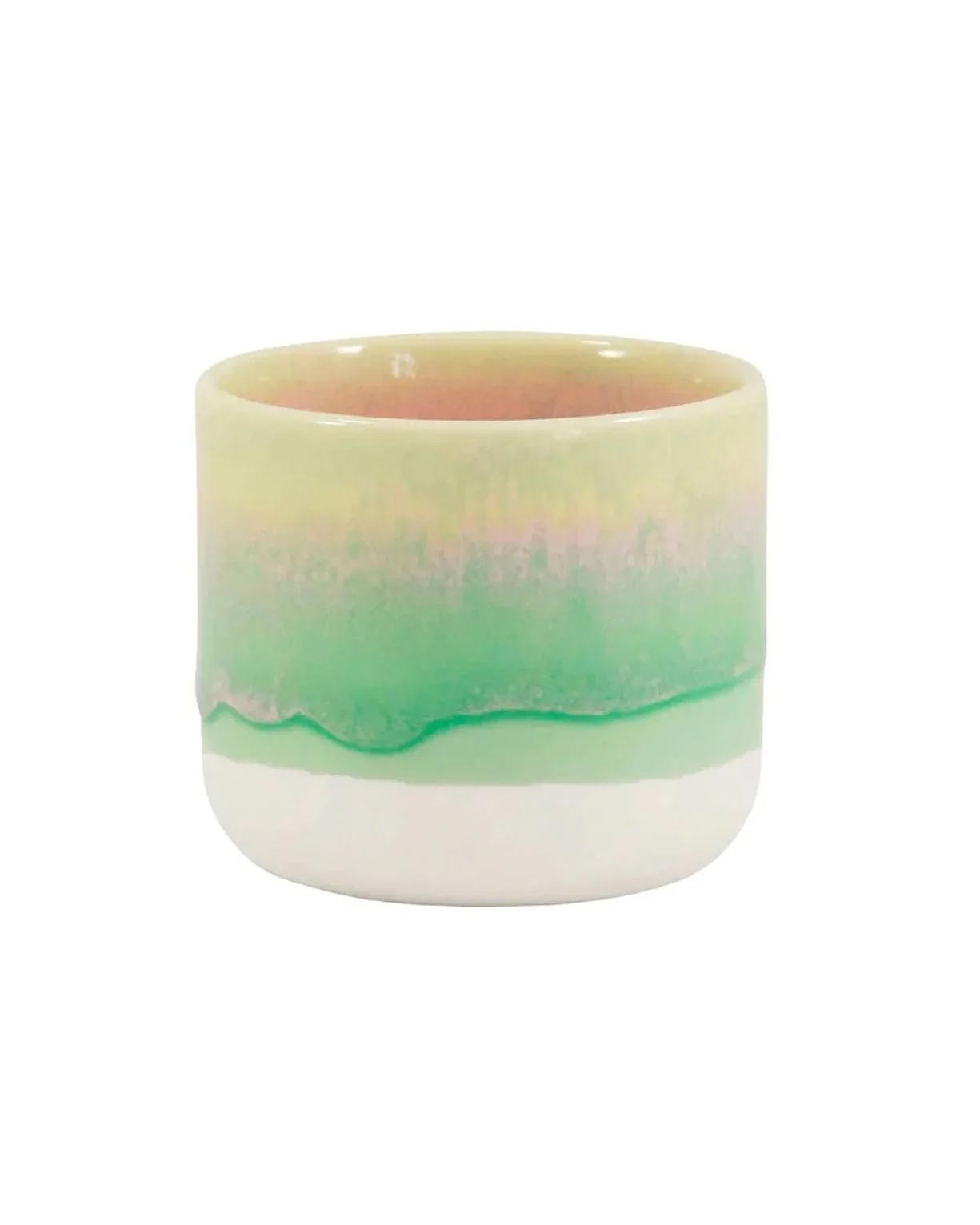 Der Sip Cup ist ein kleiner, handgegossener und glasierter Porzellan-Becher vom dänischen Keramiklabel Studio Arhoj. Er kann auch als Übertopf für winzige Pflanzen, als Behälter für kleinere Gegenstände oder Lebensmittel verwendet werden. Da jedes Teil von Hand glasiert wird, können sich diese leicht unterscheiden. Jeder Becher für sich ist somit ein Einzelstück.