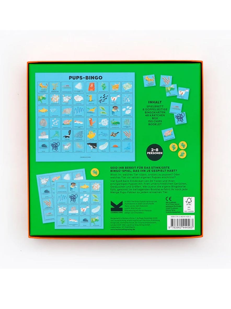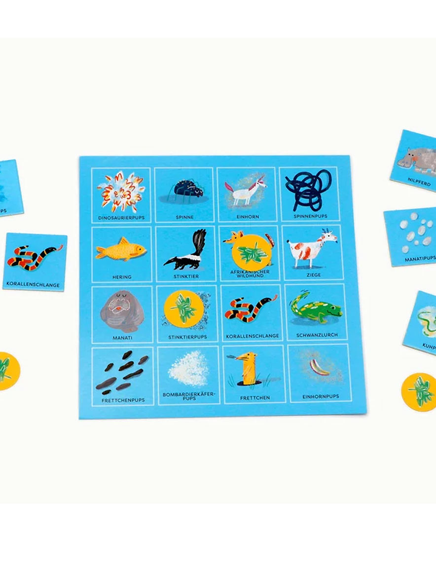 Wir garantieren, dass bei diesem Spiel sehr viel gekichert und gelacht wird! Hier wimmelt es nämlich von Tieren und ihren Pupsen, über die ihr im beiliegenden Booklet noch so einiges erfahrt: zum Beispiel, wessen Pupse am dollsten stinken, welches Tier vor seinen eigenen Pupsen erschrickt und welches rülpst, anstatt zu pupsen. Und sogar wie Einhorn-Pupse aussehen! Wer zuerst alle Felder auf der eigenen Bingokarte markieren konnte, gewinnt!