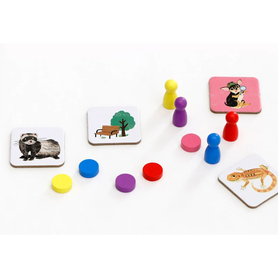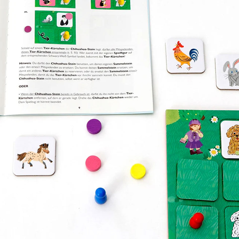 Helft ihnen und lauft als Tier- Detektiv*innen über das Spielbrett und dreht die Kärtchen um, um passende Tierpaare schneller zu finden als eure Mitspielenden! Dieses brandneue Memo-Brettspiel hat eine taktische Komponente und bietet Kindern und Familien jede Menge Abwechslung und Spaß.