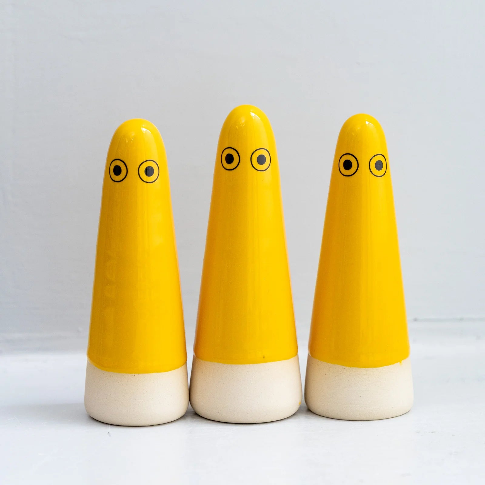 Die kleinen Geister bevölkern deinen Wohnraum und machen sich nützlich. Sie dienen als Papiergewichte, Spielzeug, Hochzeitsringhalter, Türstopper, Talismann oder als gute Freunde, wenn man niemand anders zum Reden da ist. Jeder Geist ist ein Unikat. Sie werden von Hand geformt, glasiert, dekoriert und 3x gebrannt. Made in Dänemark!