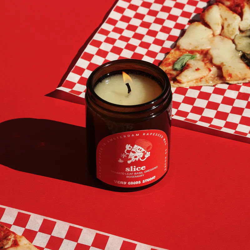 Slice – Duftkerze von Very Goods Studio ist eine liebevolle Hommage an eines der besten Dinge überhaupt: Pizza. Inspiriert von allem, was gute Pizza ausmacht – sonnengereifte Tomaten, frisches Basilikum, Kräuter, ein rauchiger Ofen und diese eine kleine Prise Knoblauch – fängt Slice genau diesen Moment ein, wenn alles einfach stimmt.