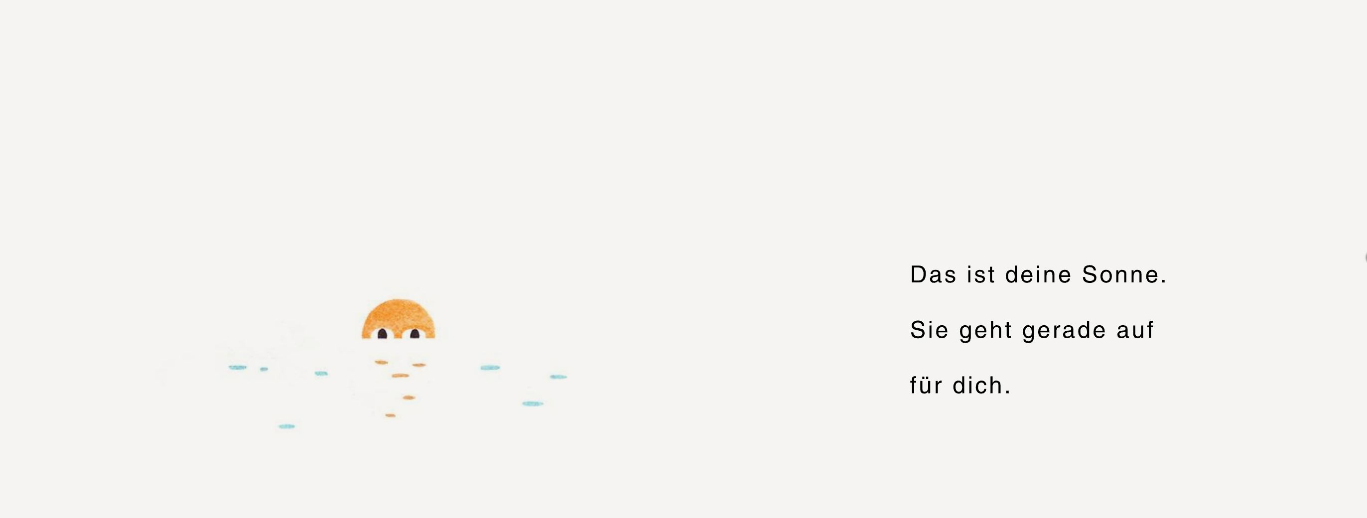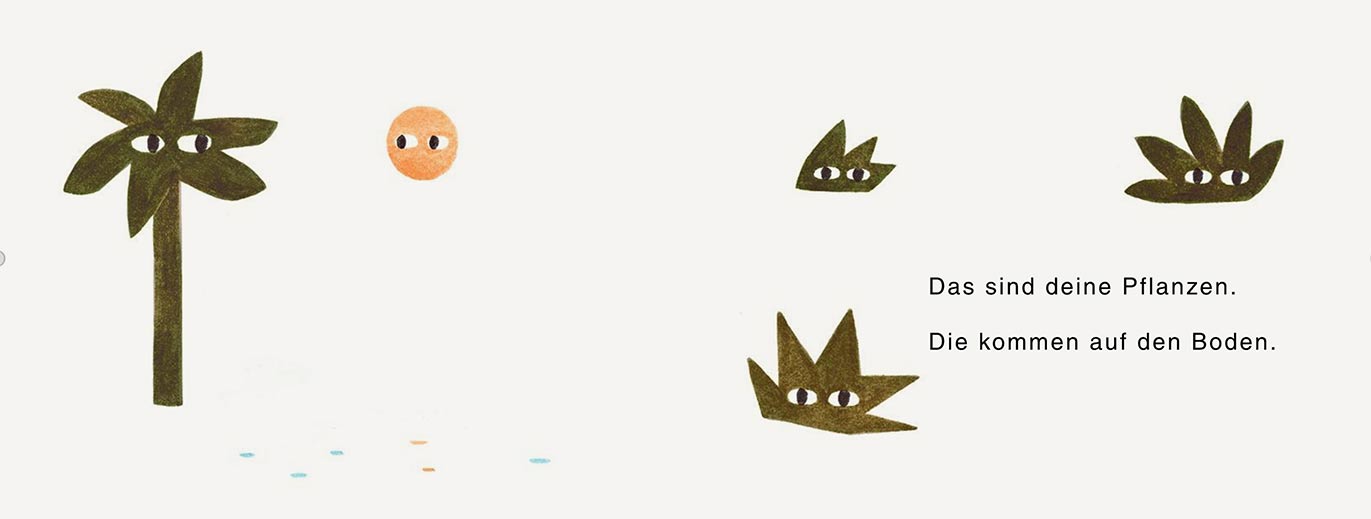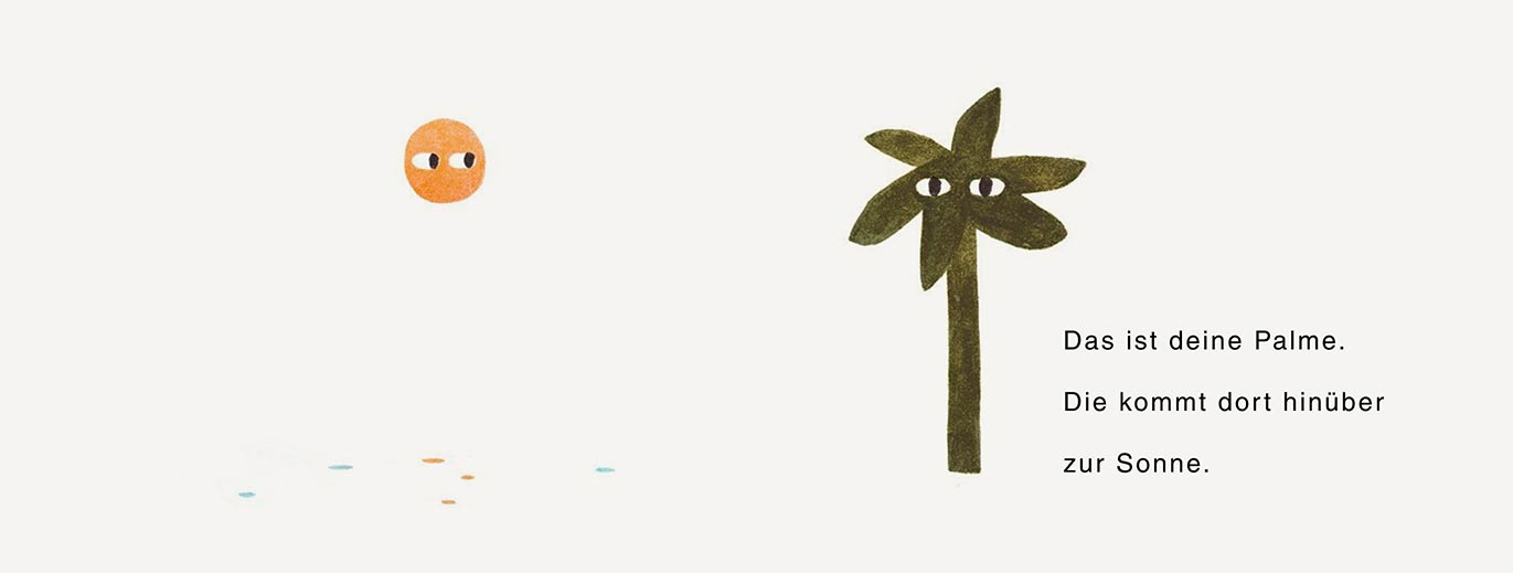 Das ist deine Insel. Hier gibt es eine Palme, ein Zelt, ein Boot und einen Vogel, der zwar manchmal wegfliegt, aber immer wieder zurückkommt. Die Sonne geht unter, und auch du kannst deine Augen schließen und weiterträumen.