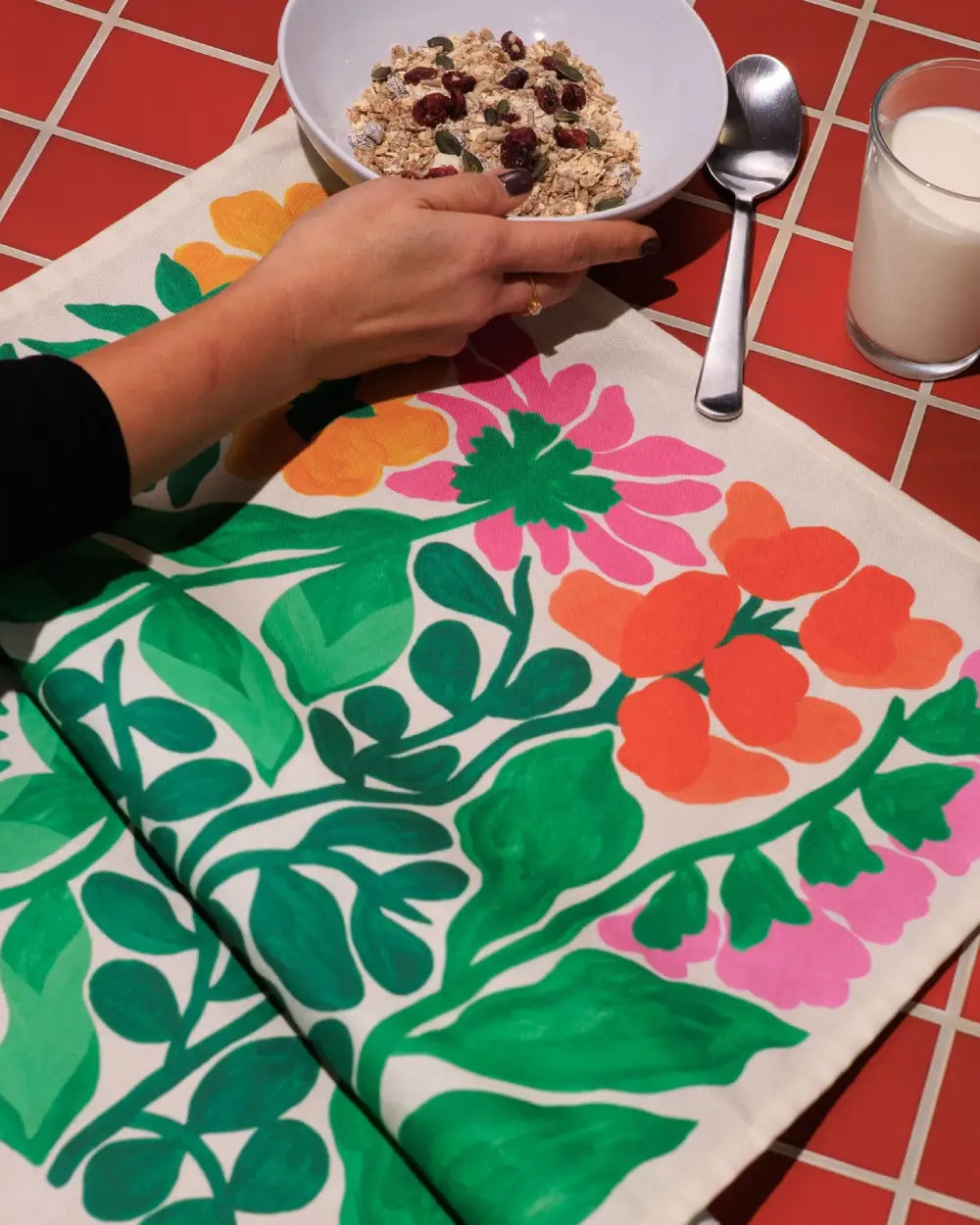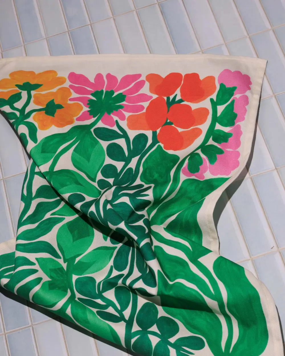 Wildflower Regeneration Geschirrhandtuch, illustriert von Liv Lee für das britische Label Evermade.