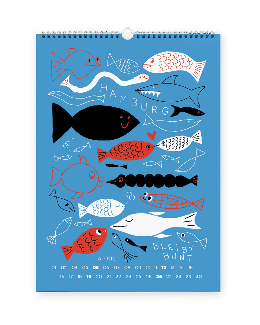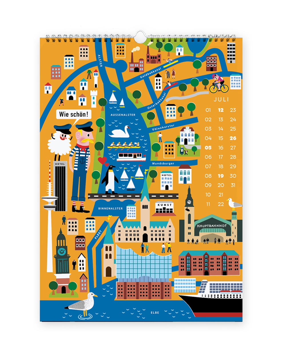 13-seitiger HAMBURG Wandkalender im Format DIN A4 mit weißer Metall-Spiralbindung - made by Jan Kruse vom Human Empire Studio. Das neue Jahr kann kommen...