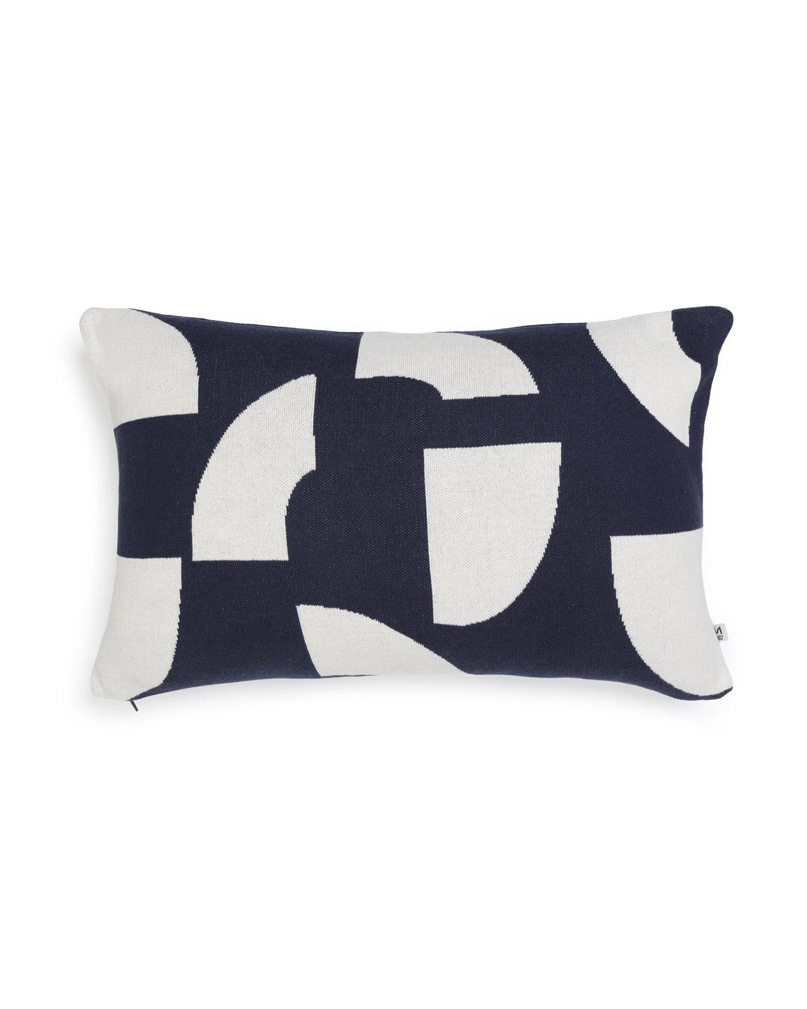 Dieses kuschelig-schöne Kissen mit abstrakten elfenbeinfarbenden Grafikelementen auf Navy ist vom englischen Label Sophie Home.