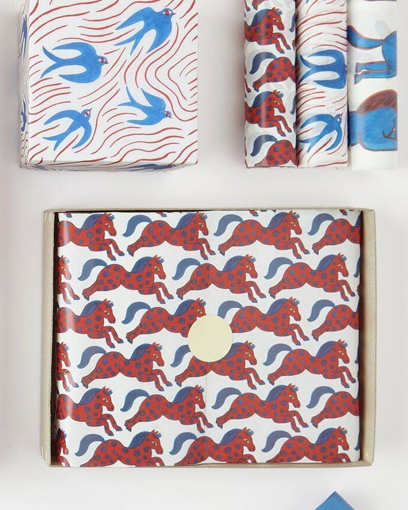 Das Seidenpapier "Midsommar Magic" besticht durch sein edles Design mit niedlichen Pferdemotiven. Mit einer Größe von 50 x 415 cm auf der Rolle bietet es ausreichend Material für kreative und dekorative Verpackungsideen. Die leichte Grammatur von 28 g/m² verleiht dem Papier eine hochwertige, feine Haptik, ideal für edle Geschenkverpackungen, Bastelprojekte oder als schützende Zwischenlage. Die elegante Farbkombination macht es zu einem besonderen Blickfang. Ein vielseitiges Seidenpapier, das Eleganz und Funktionalität perfekt kombiniert