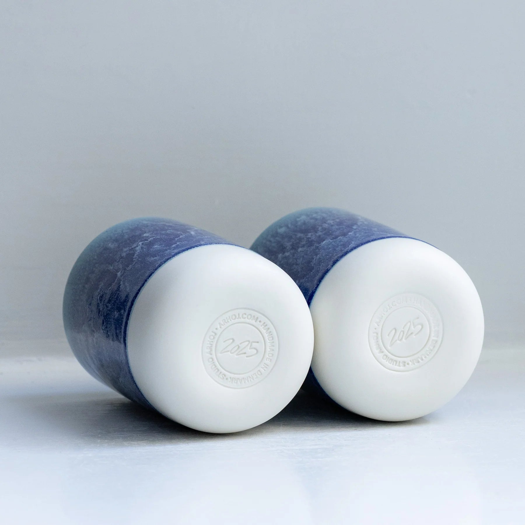 Die Slurp Cup Mariana ist ein handgegossener und glasierter Porzellanbecher von Studio Arhoj aus Kopenhagen. Slurp Cups sind die größere Version der Sip Cups und fassen 220ml.